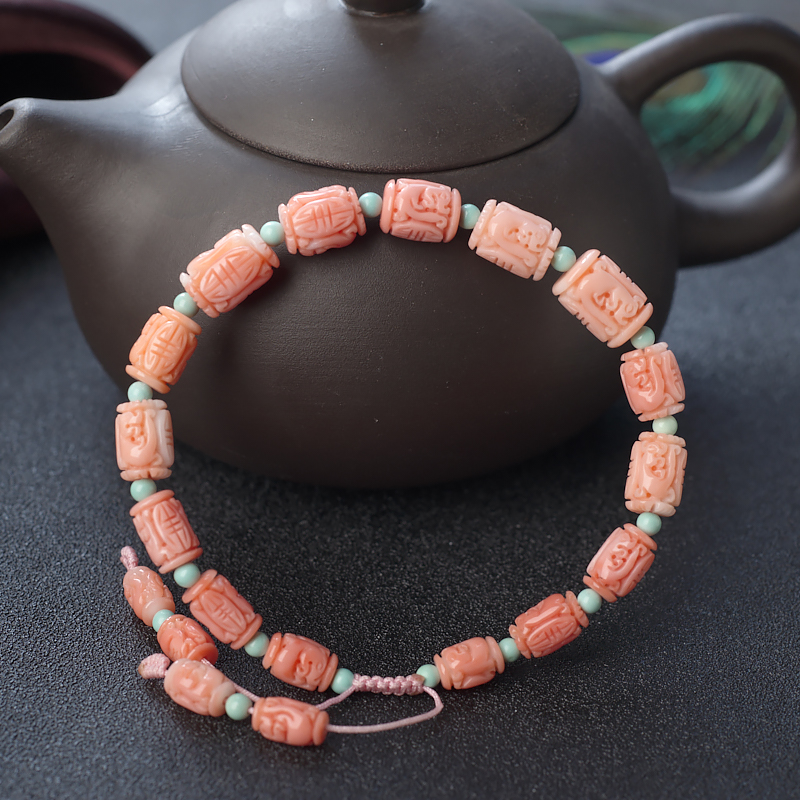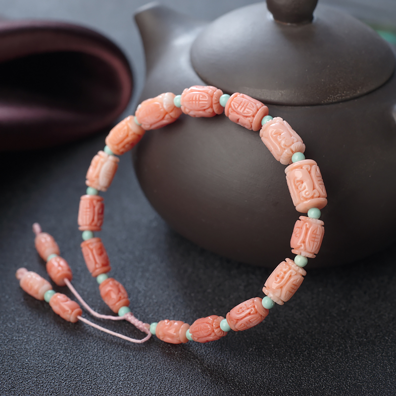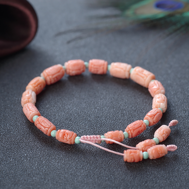 • MOMO珊瑚仿古龙桶珠单圈手串