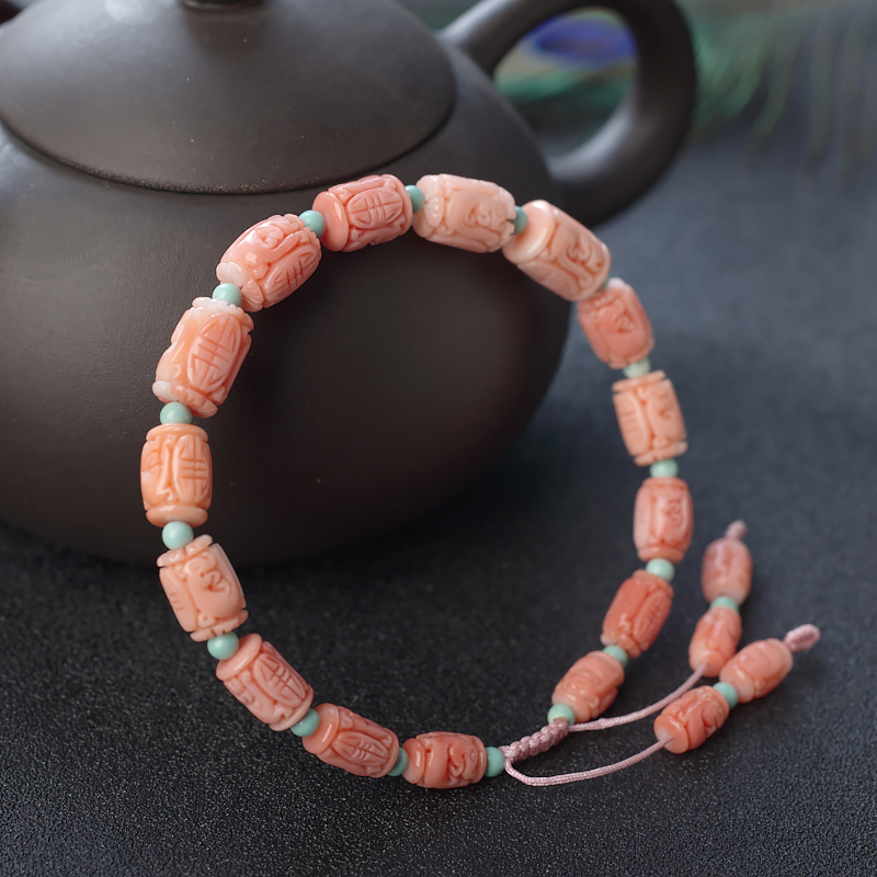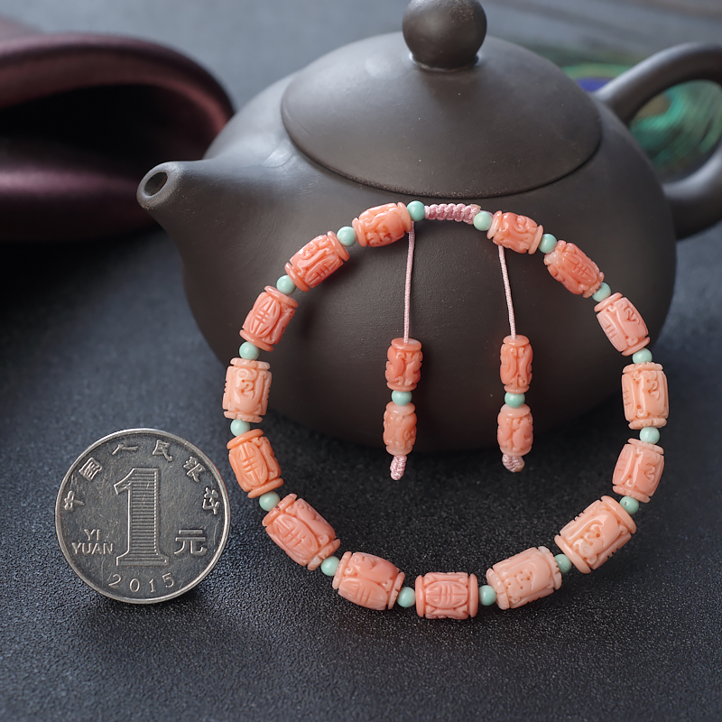 • [名  称] MOMO珊瑚仿古龙桶珠单圈手串