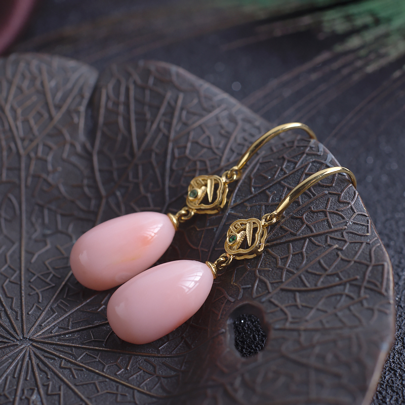• [名  称] 18KMOMO珊瑚水滴耳环