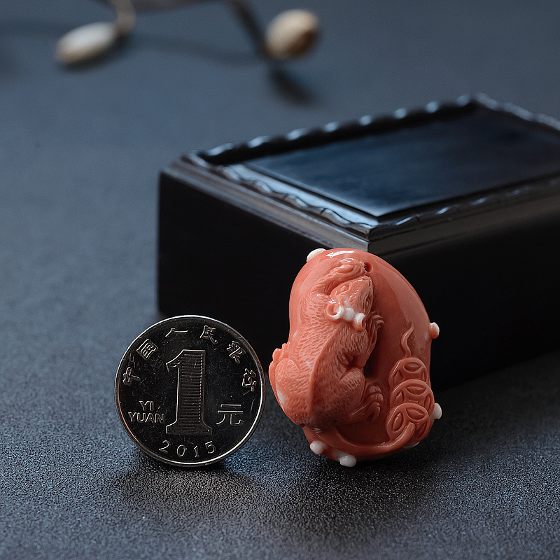 • 天然MOMO粉色珊瑚子鼠吊坠 - 红掌柜