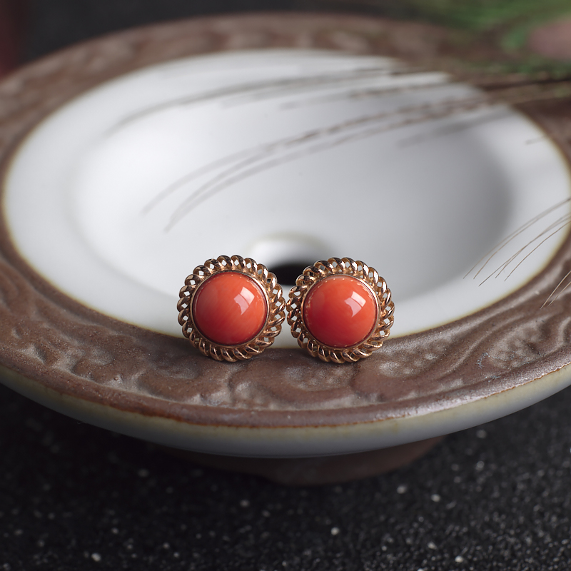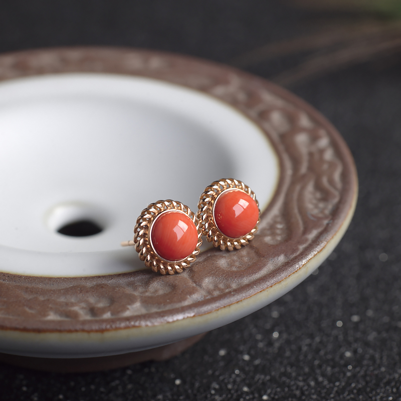 • 18KMOMO珊瑚圆形耳钉