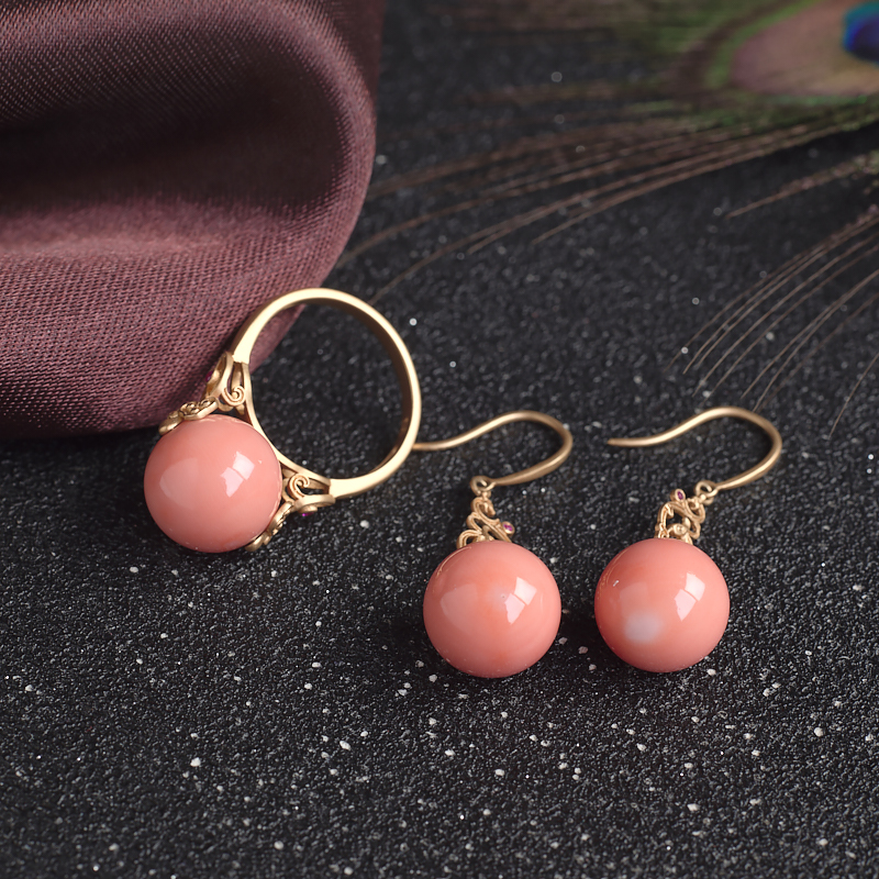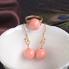 • 18KMOMO珊瑚圆珠戒指/耳环套装