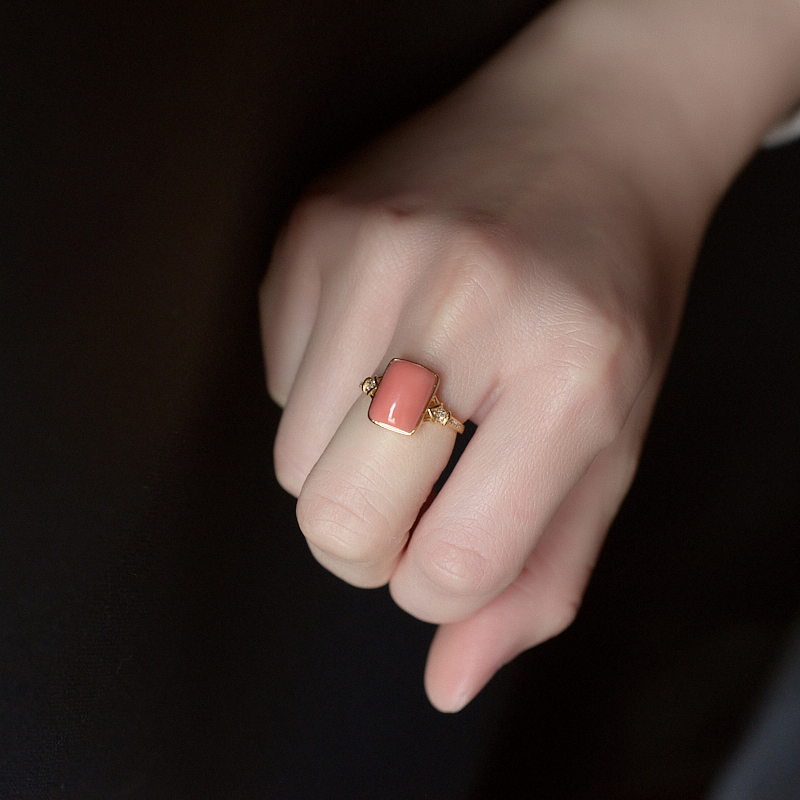 • 18KMOMO珊瑚方形戒指