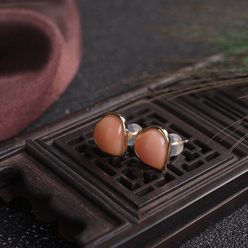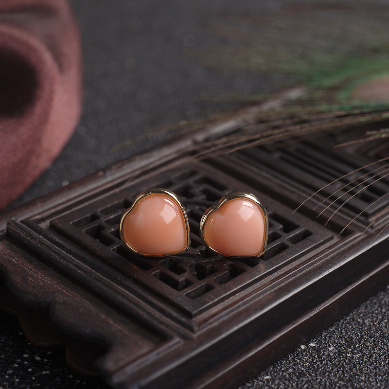 • [名  称] 18KMOMO珊瑚心形耳钉