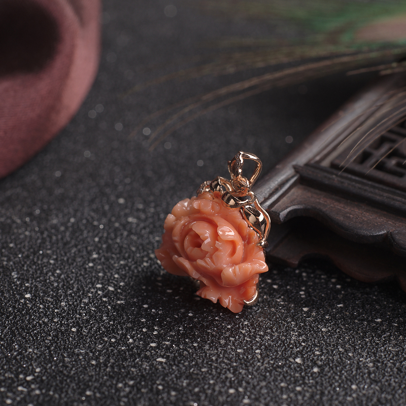 • 18KMOMO珊瑚牡丹花吊坠