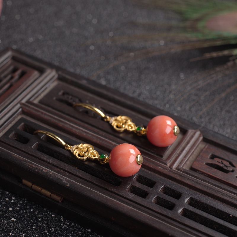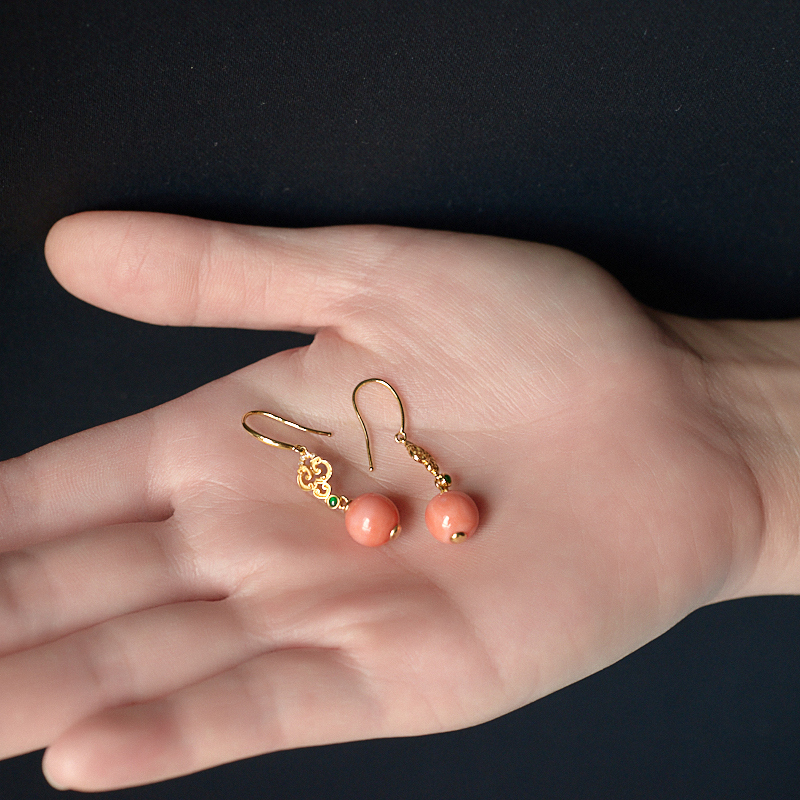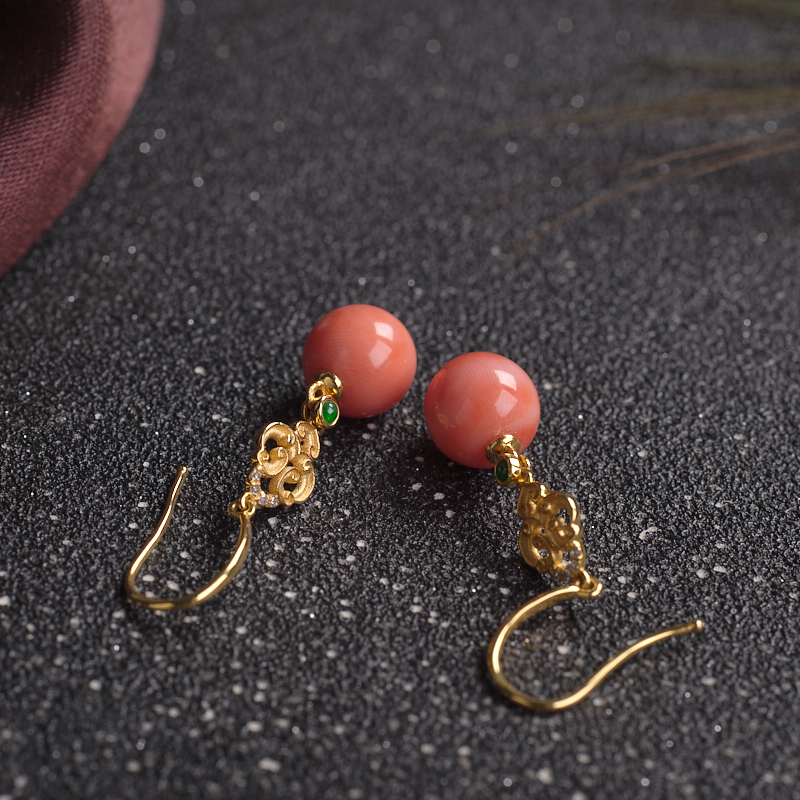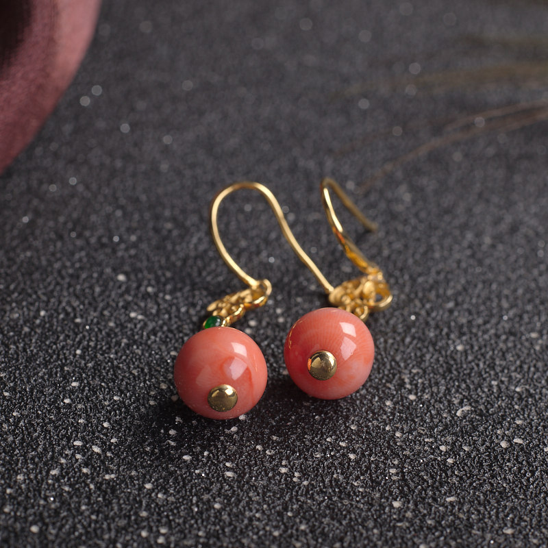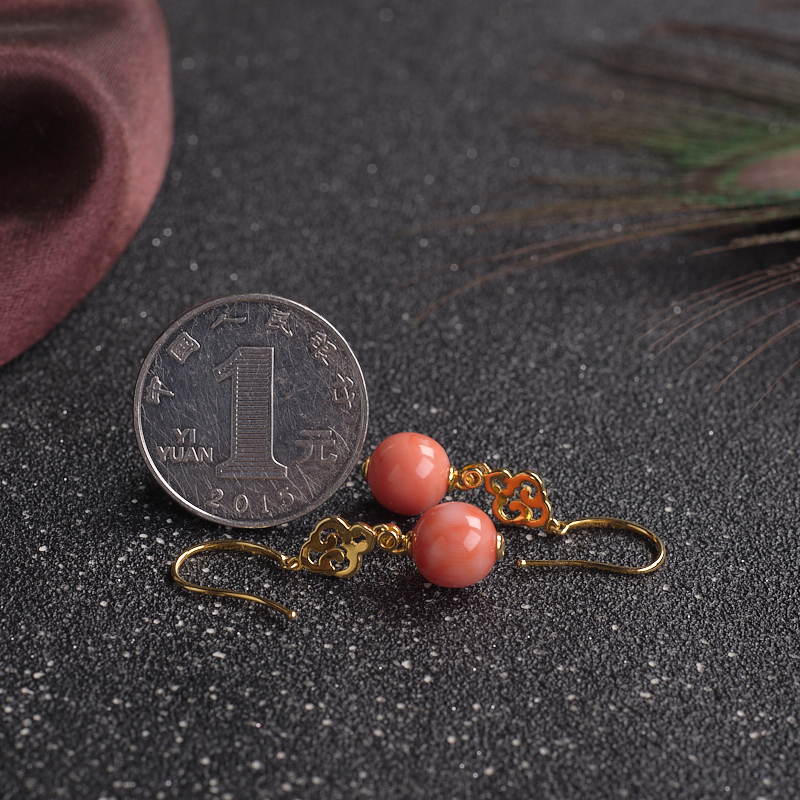 • [名  称] 18KMOMO珊瑚圆珠耳环