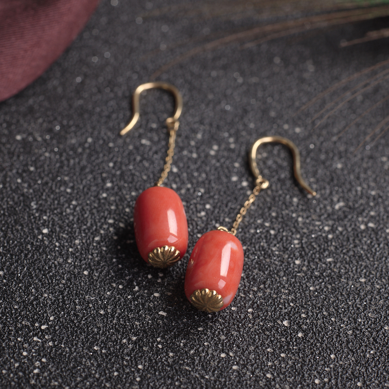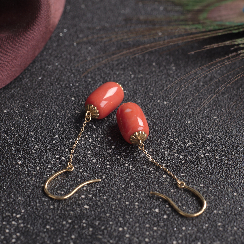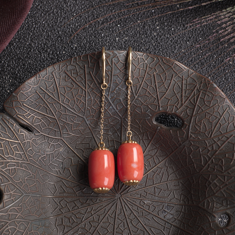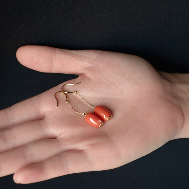 • 18KMOMO珊瑚桶珠耳环