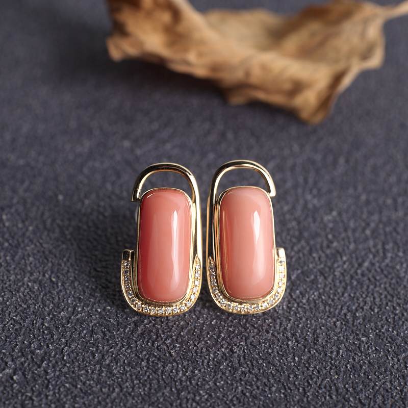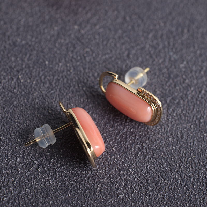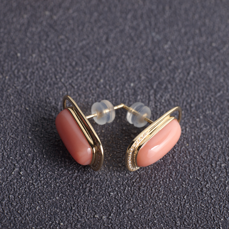 • [名  称] 18KMOMO珊瑚方形耳钉