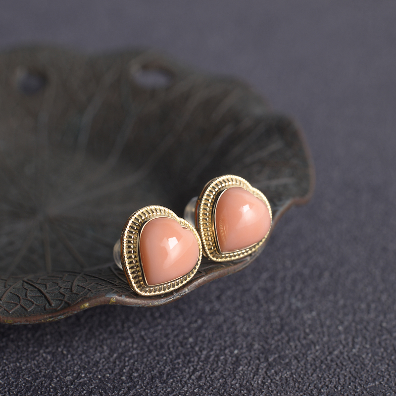 • 18KMOMO珊瑚心形耳钉