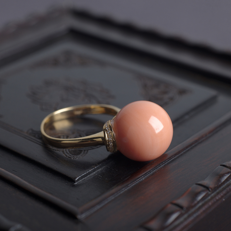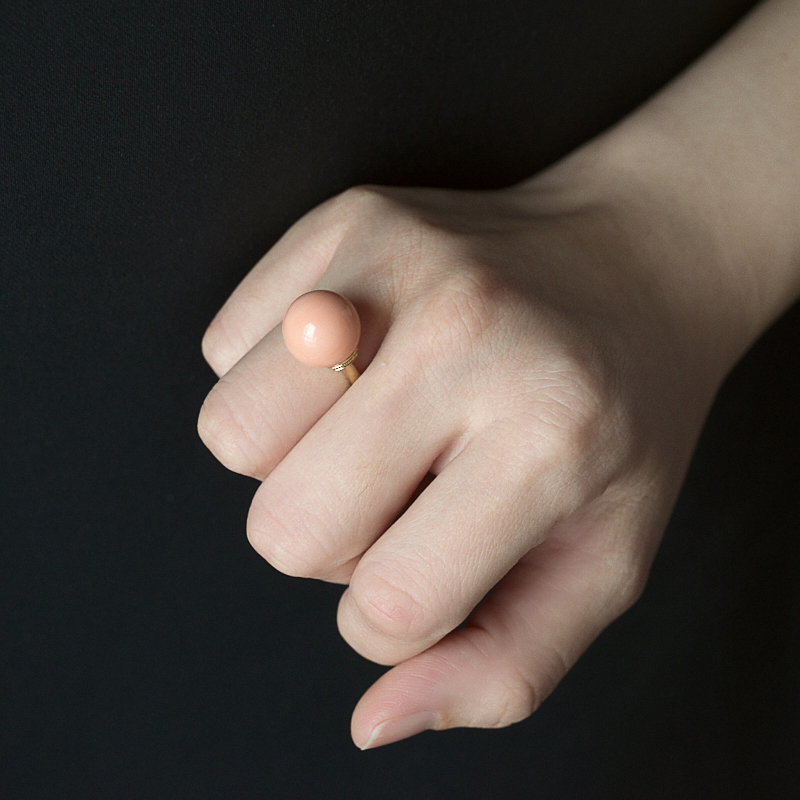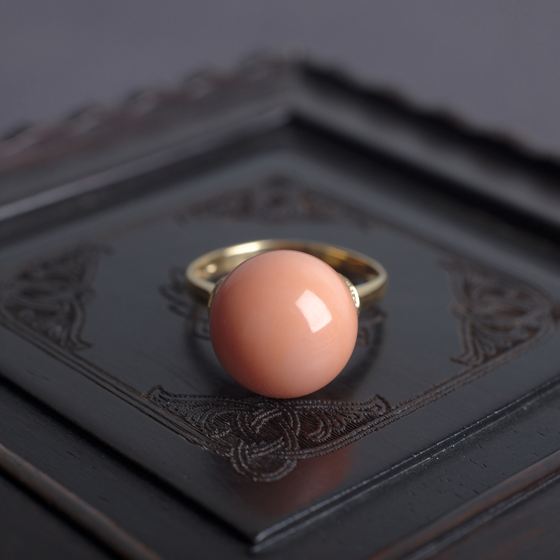• [名  称] 18KMOMO珊瑚圆珠戒指