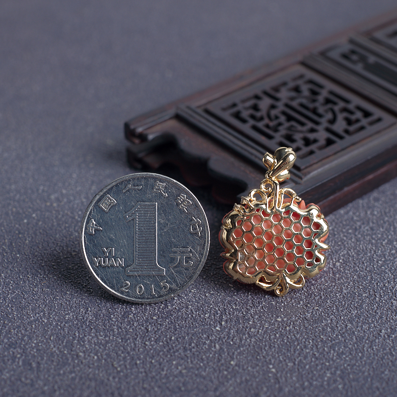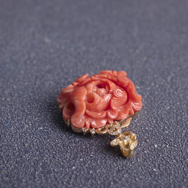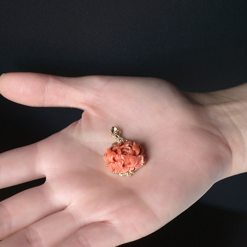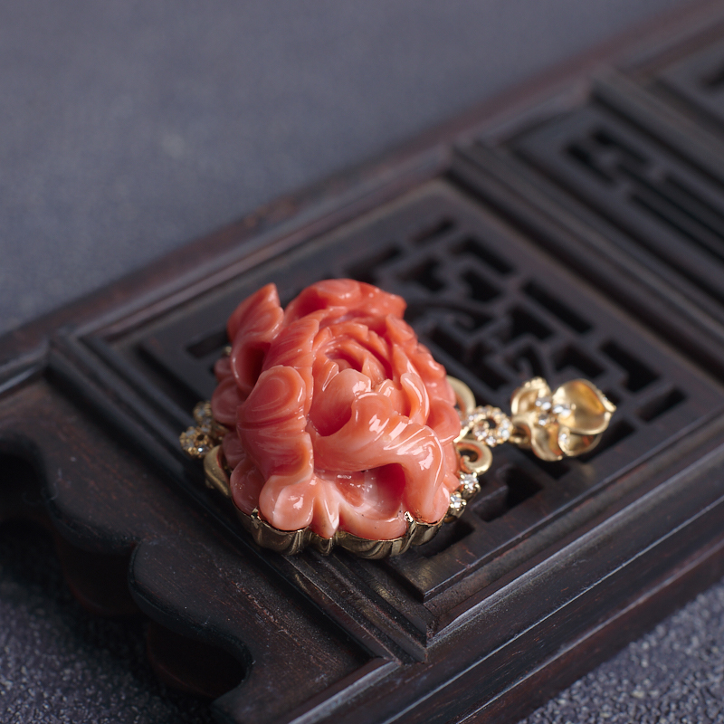 • [名  称] 18KMOMO珊瑚牡丹花吊坠
