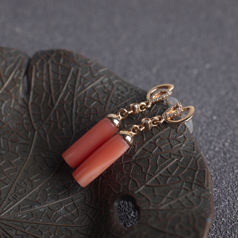 • [名  称] 18KMOMO珊瑚圆柱耳坠