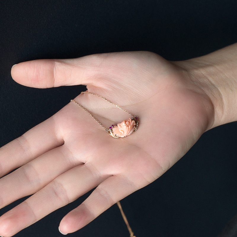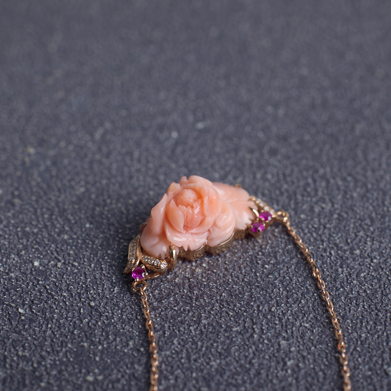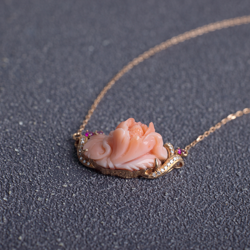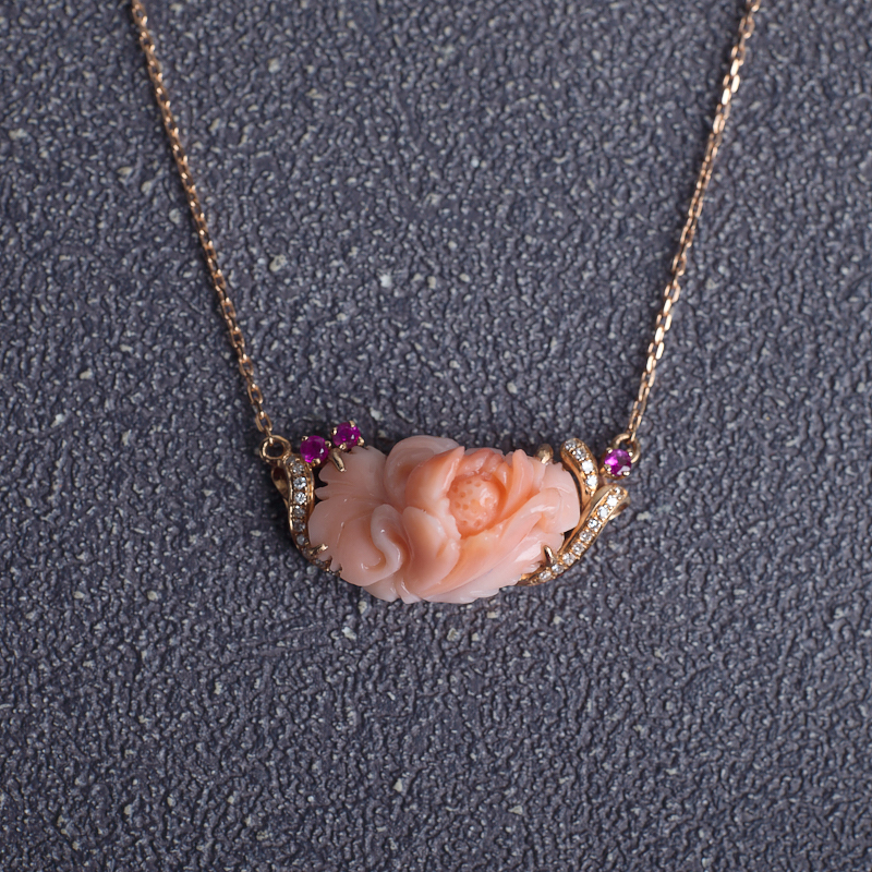 • [名  称] 18KMOMO珊瑚牡丹花项链