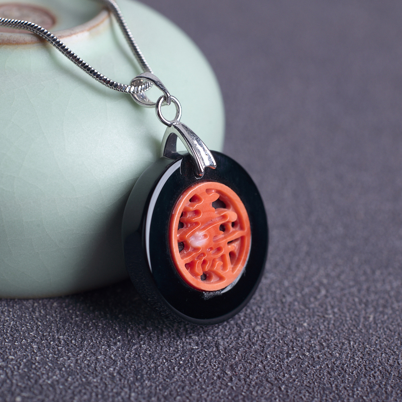 • [名  称] 银镶MOMO珊瑚寿字吊坠