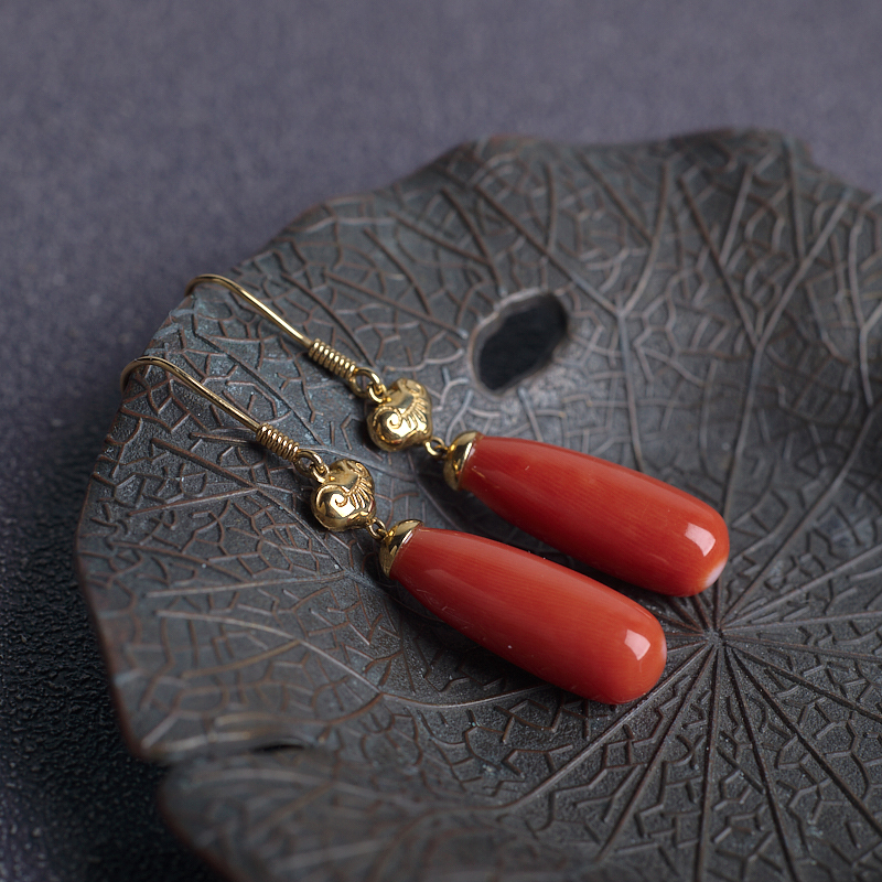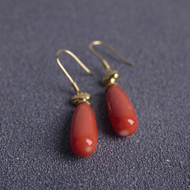 • [名  称] 18KMOMO珊瑚水滴耳环