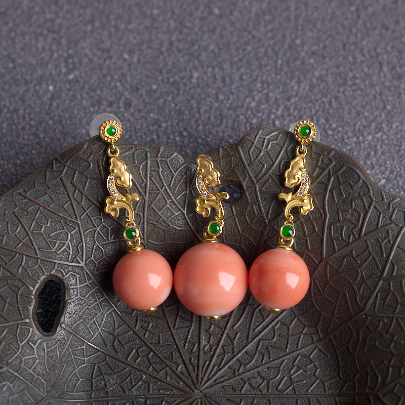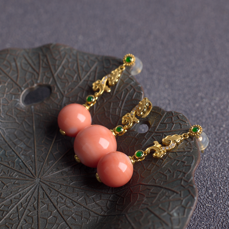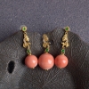 • 18KMOMO珊瑚圆珠吊坠/耳坠套装