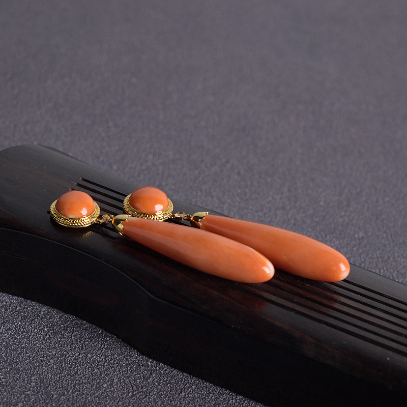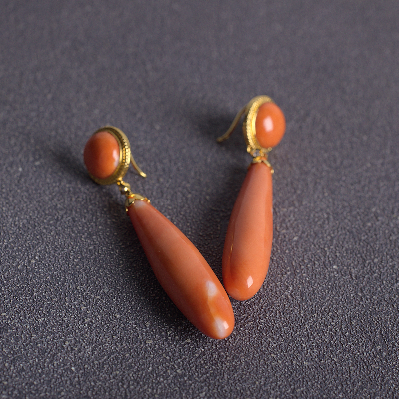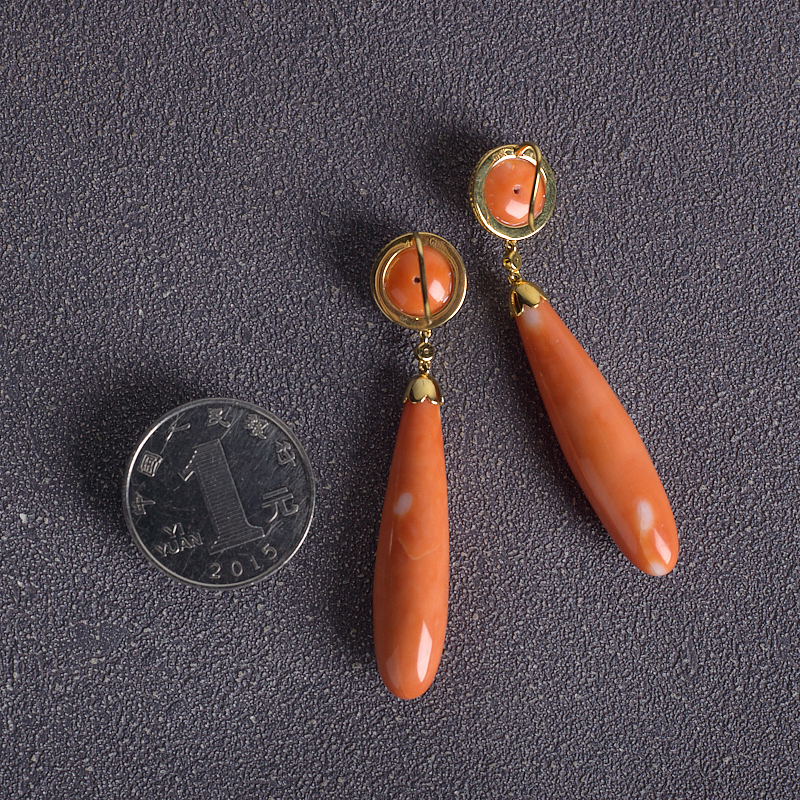 • [名  称] 18KMOMO珊瑚水滴耳环