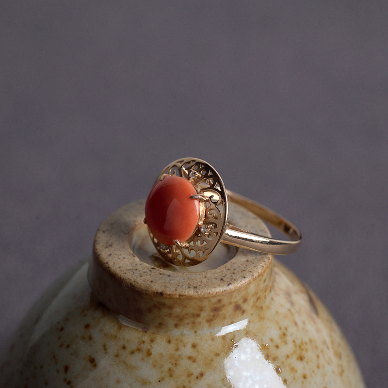 • [名  称] 18KMOMO珊瑚圆形戒指