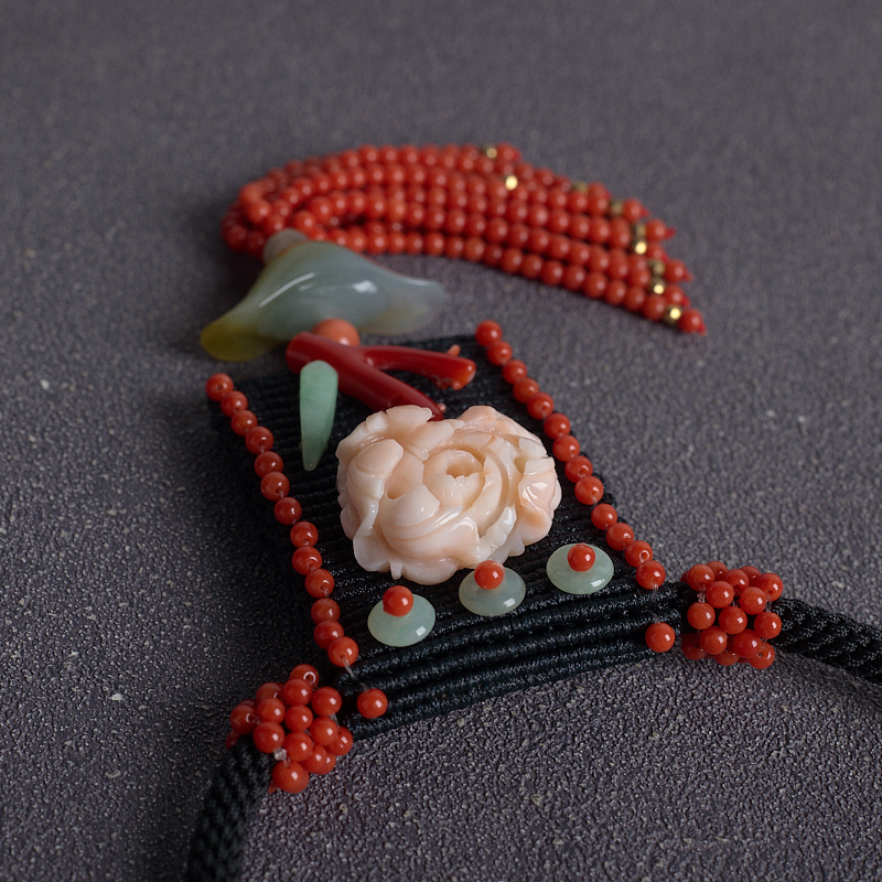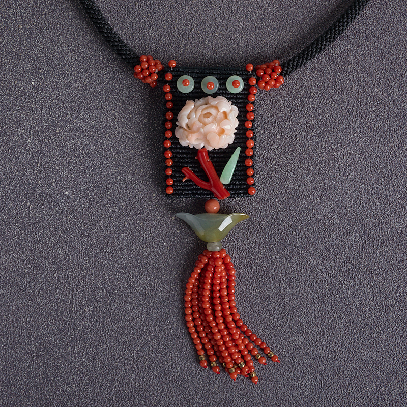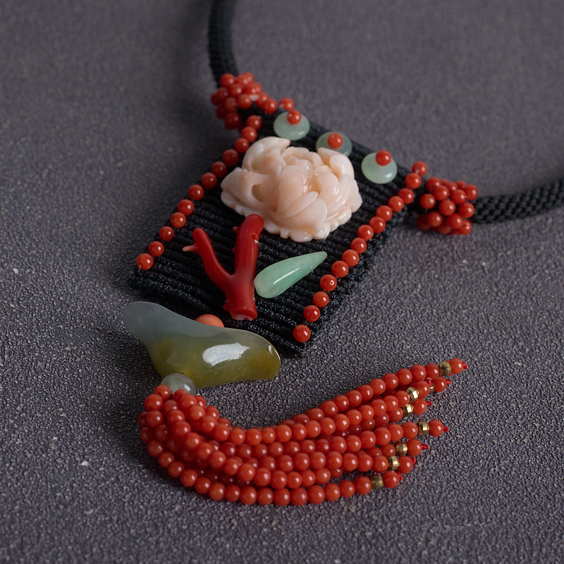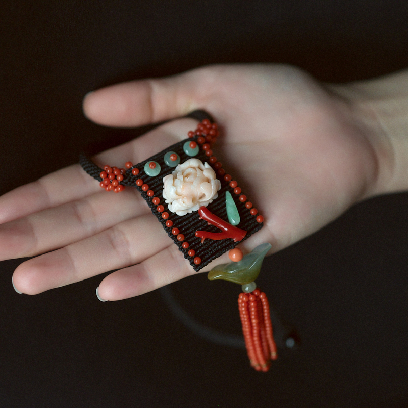 • MOMO珊瑚牡丹花编织项链