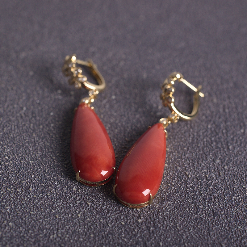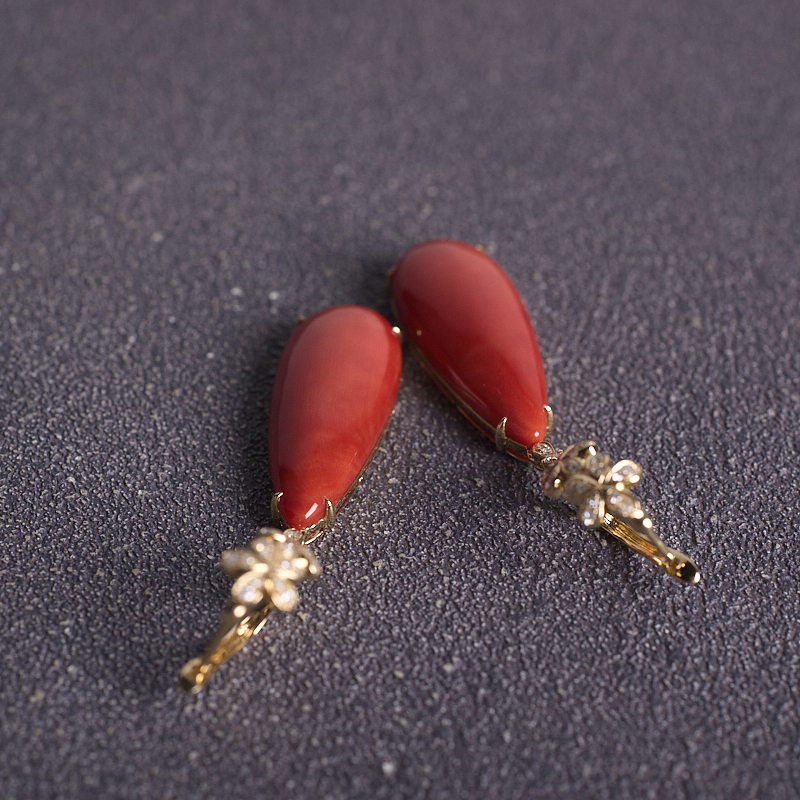 • [名  称] 18KMOMO珊瑚水滴耳坠
