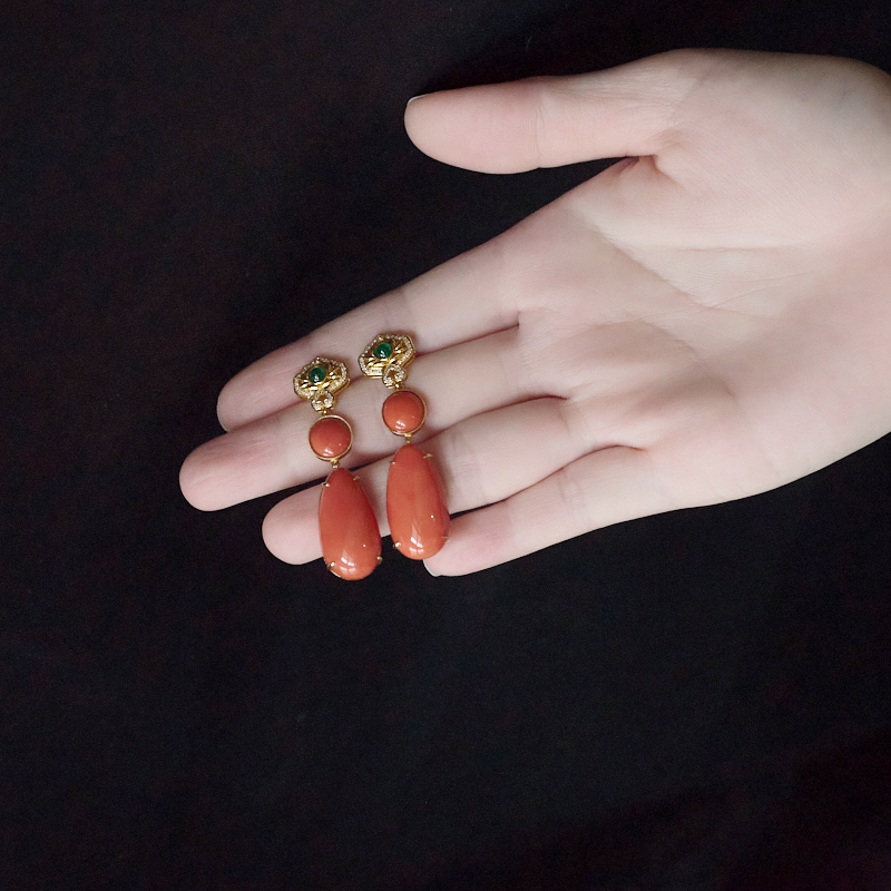• [名  称] 18KMOMO珊瑚水滴耳坠