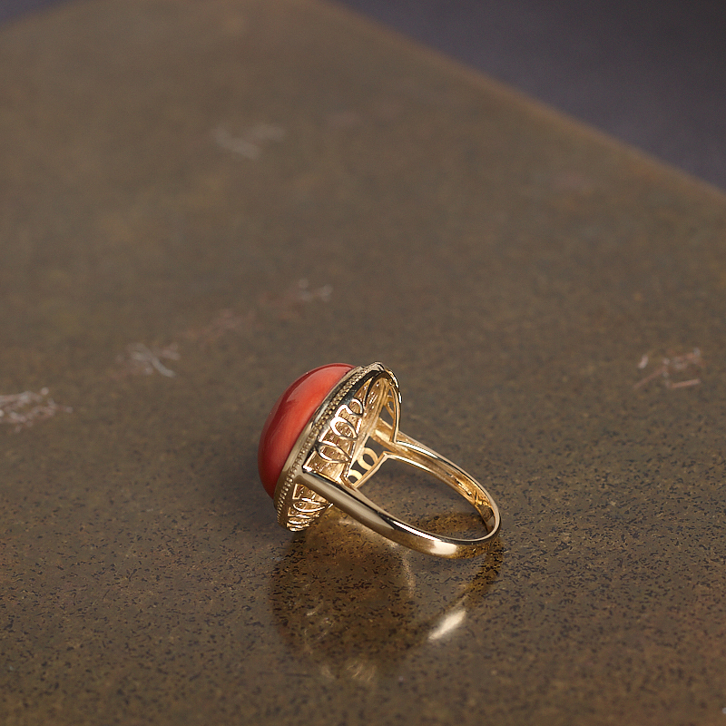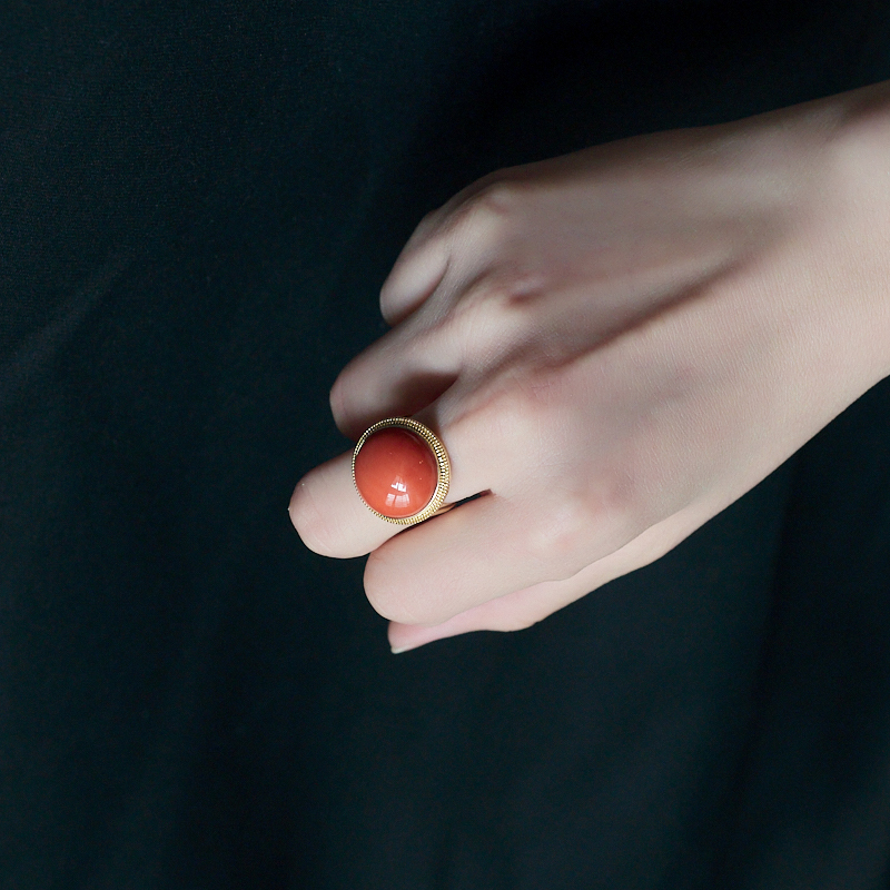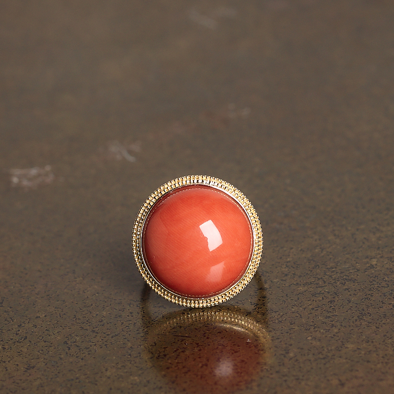 • [名  称] 18KMOMO珊瑚圆形戒指