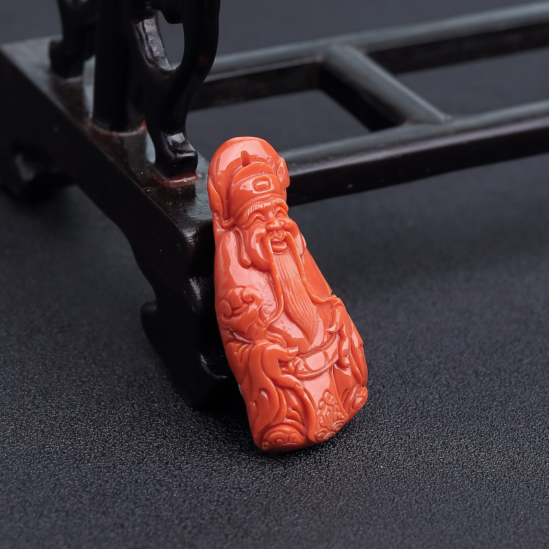 • 台湾天然MOMO珊瑚财神吊坠-红掌柜