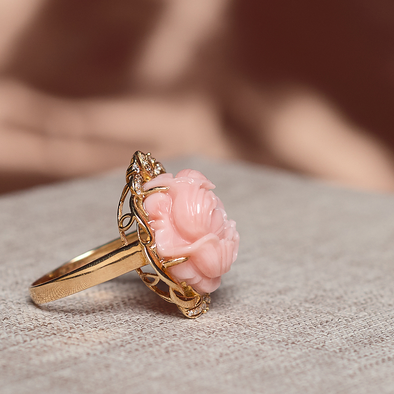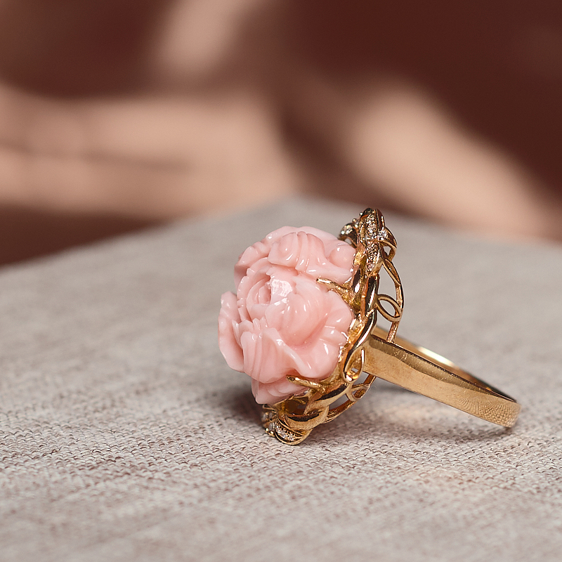 • 18KMOMO珊瑚花开富贵戒指