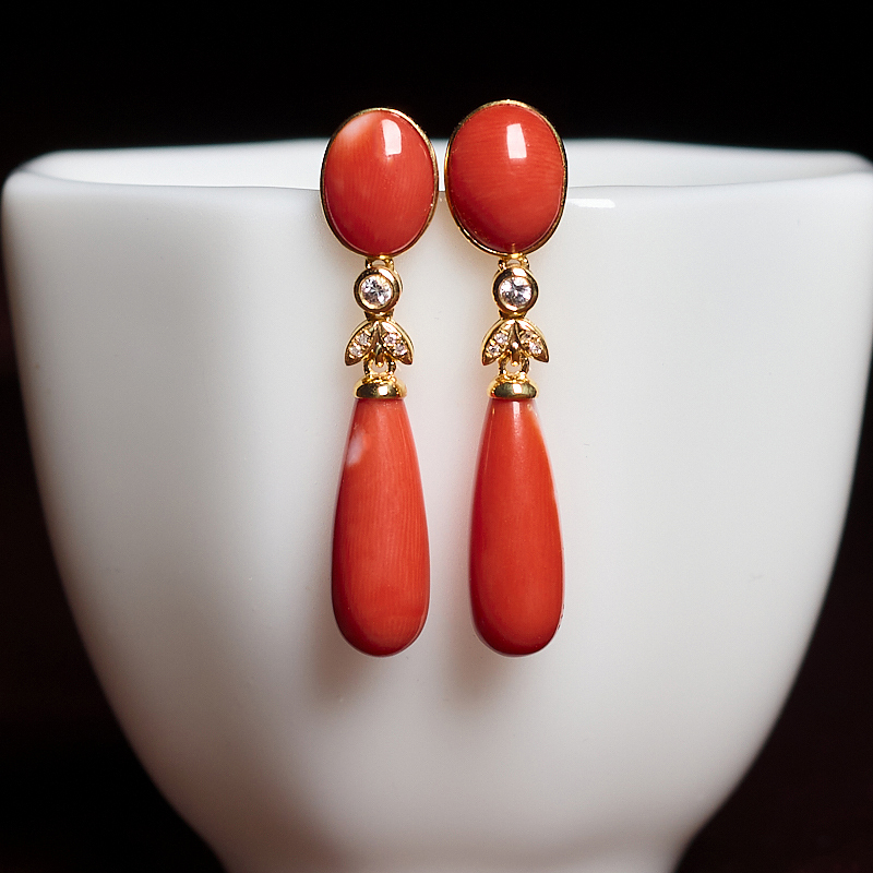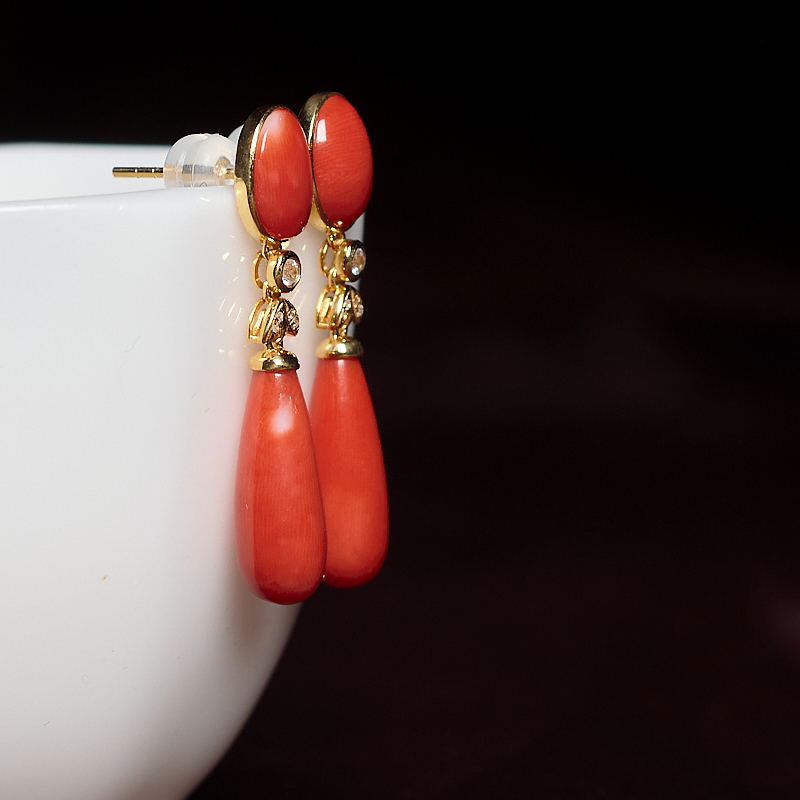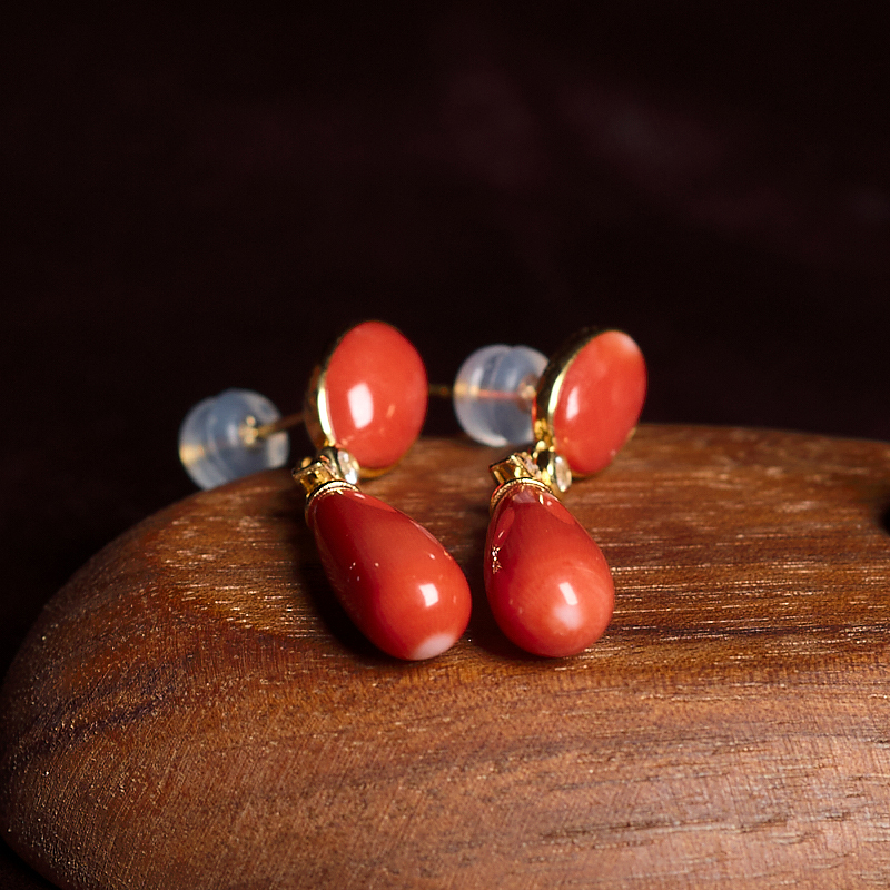 • [名  称] 18KMOMO珊瑚水滴耳环