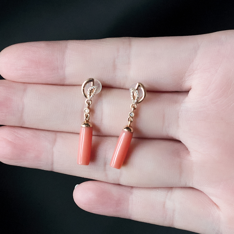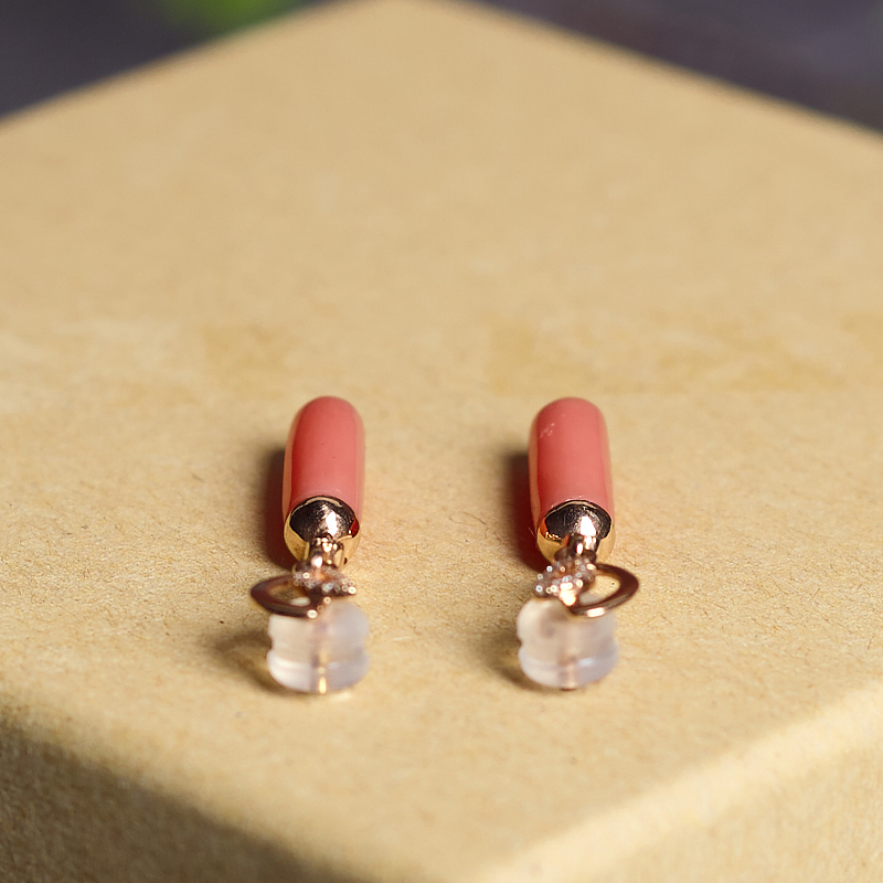 • [名  称] 18KMOMO珊瑚圆柱耳坠