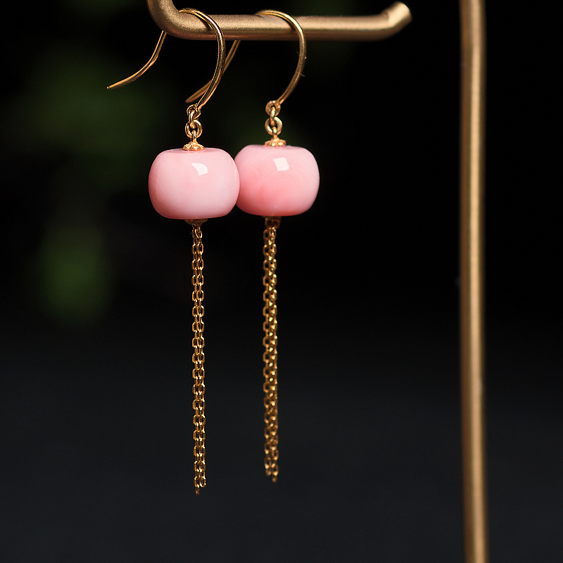 • [名  称] 18KMOMO珊瑚鼓珠耳环