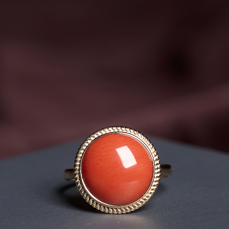 • [名  称] 18KMOMO珊瑚圆形戒指