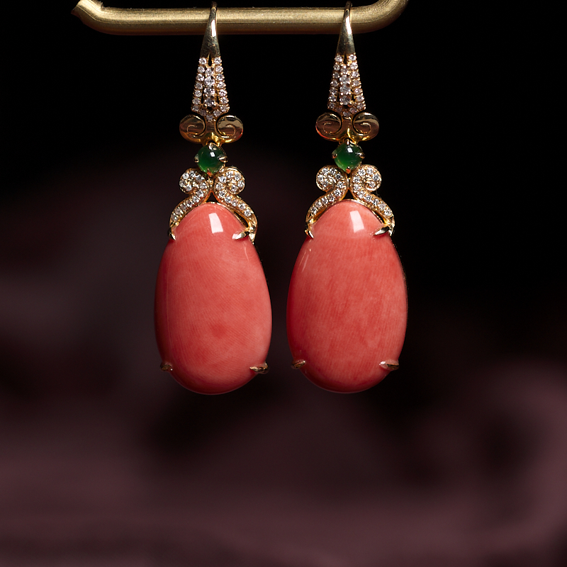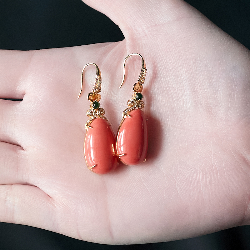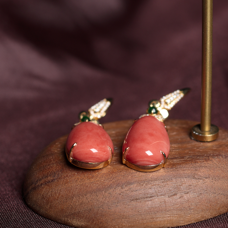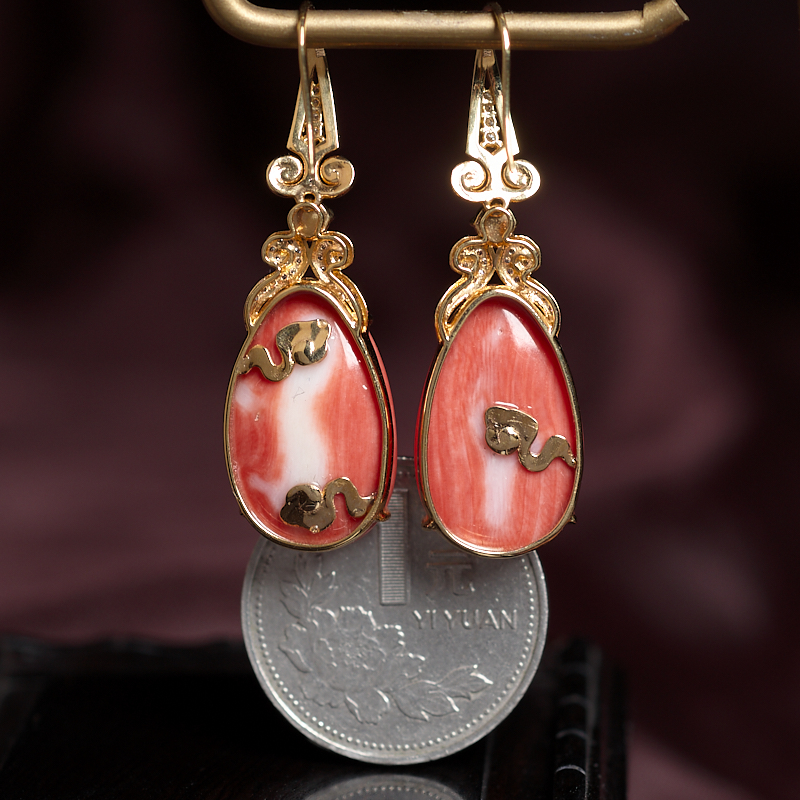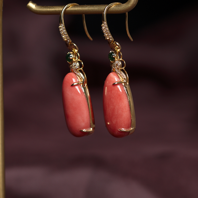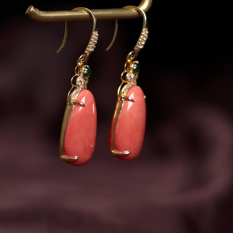 • [名  称] 18KMOMO珊瑚水滴耳环