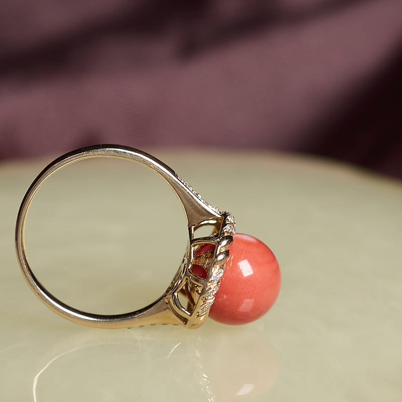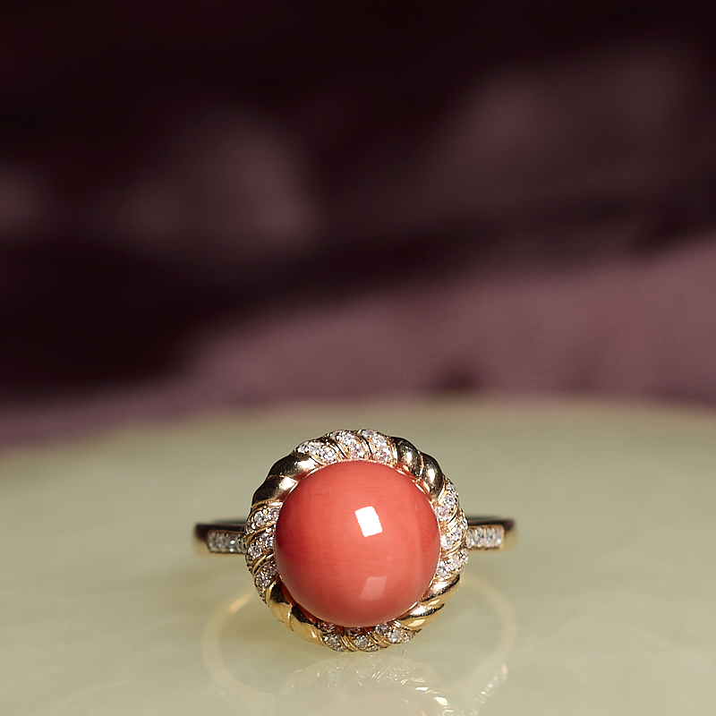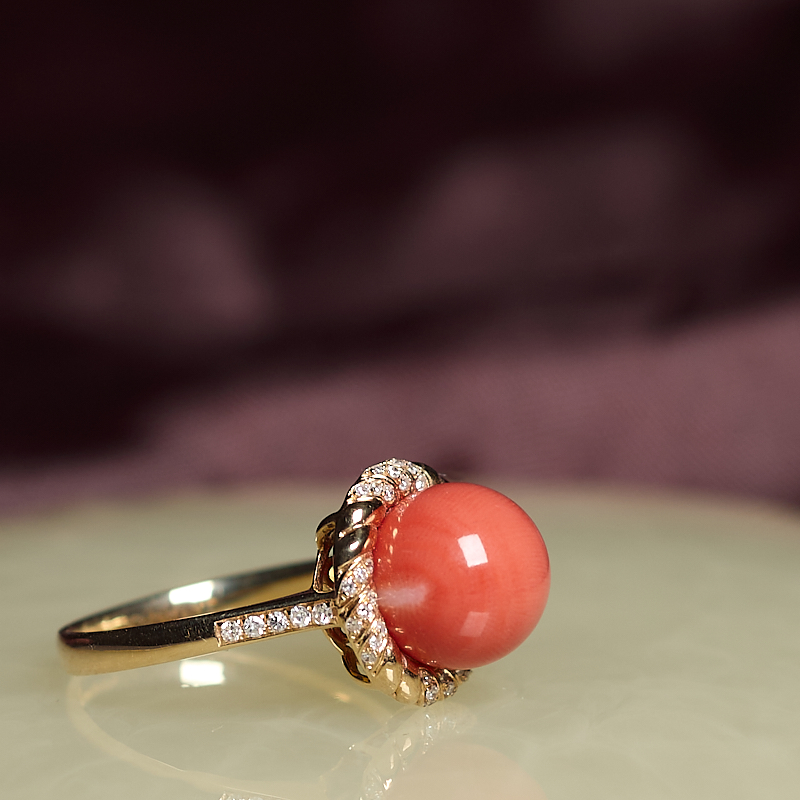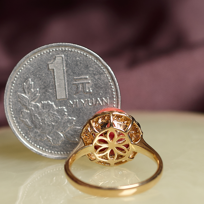 • [名  称] 18KMOMO珊瑚圆珠戒指