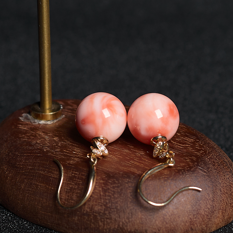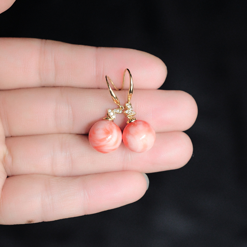 • 18KMOMO珊瑚圆珠耳环