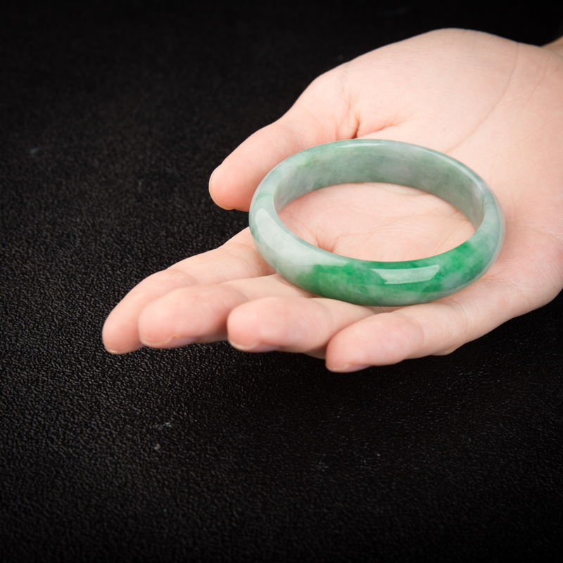 • 53.5mm豆种飘翠翡翠贵妃镯