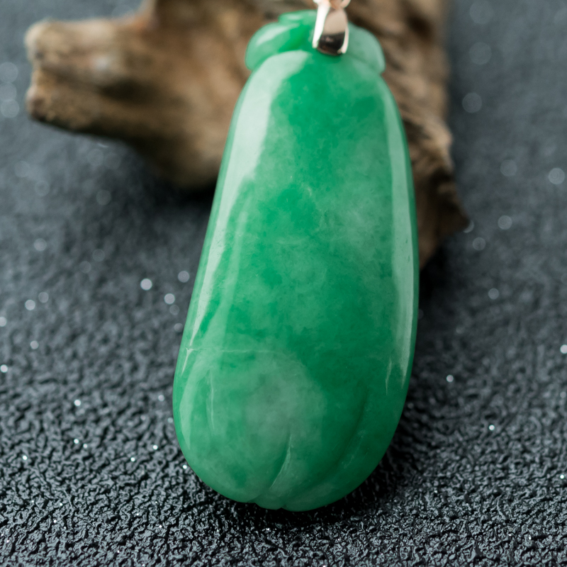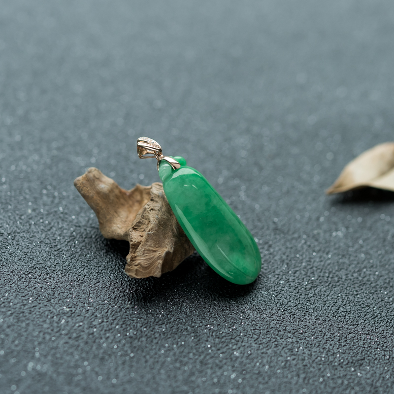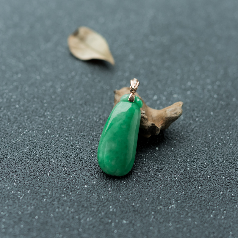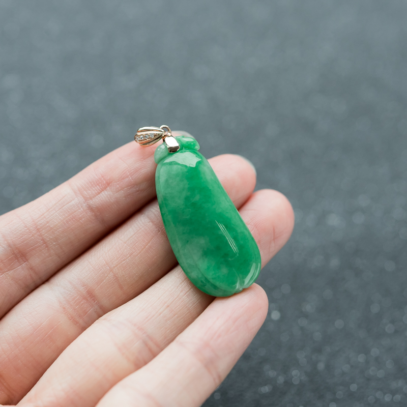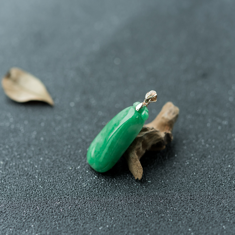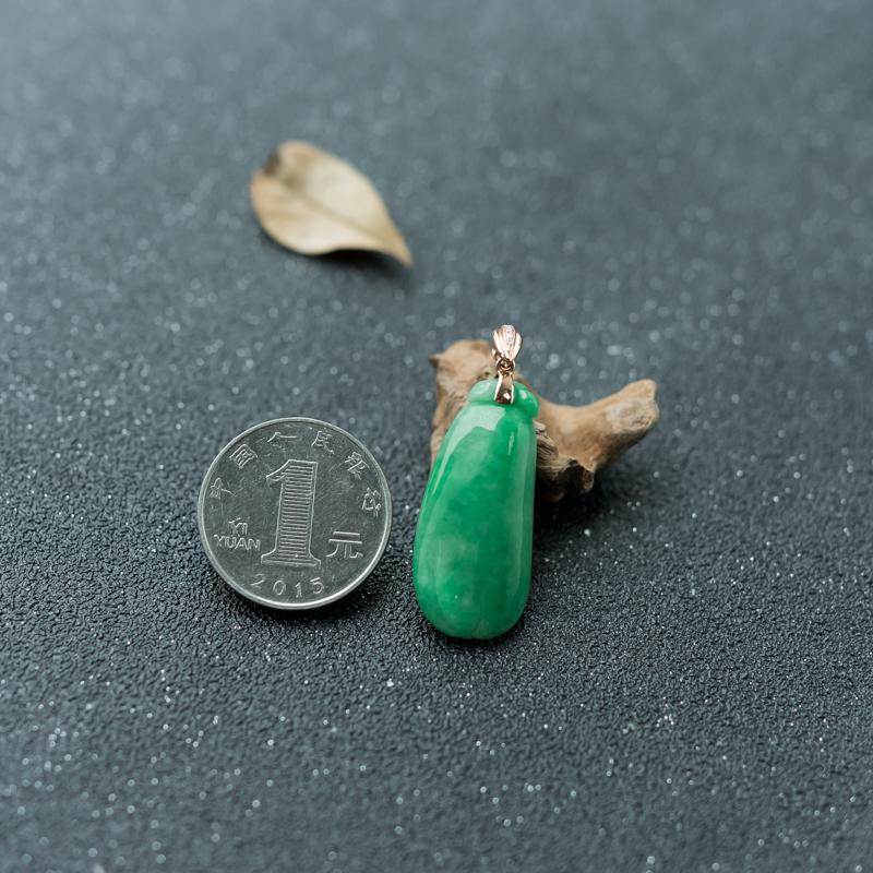 • [名  称] 18K豆种阳绿翡翠福瓜吊坠
