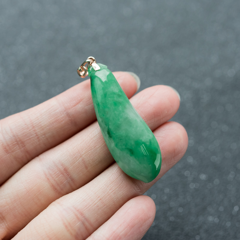 • [名  称] 18K豆种豆绿翡翠福瓜吊坠