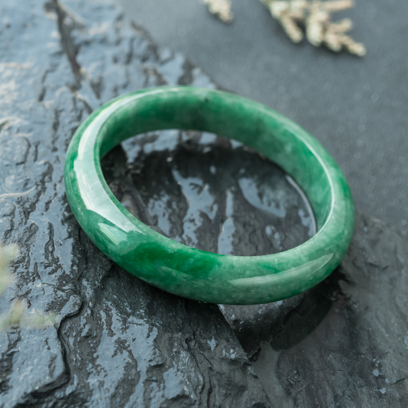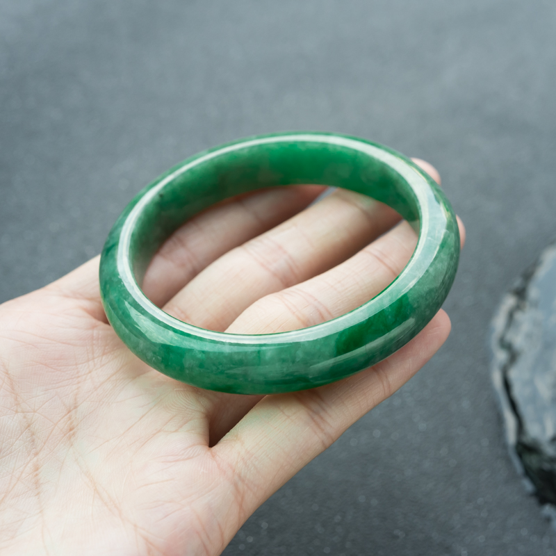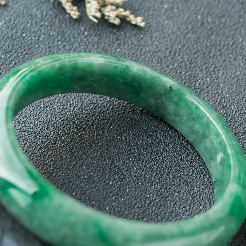 • 55.5mm豆种深绿翡翠平安镯