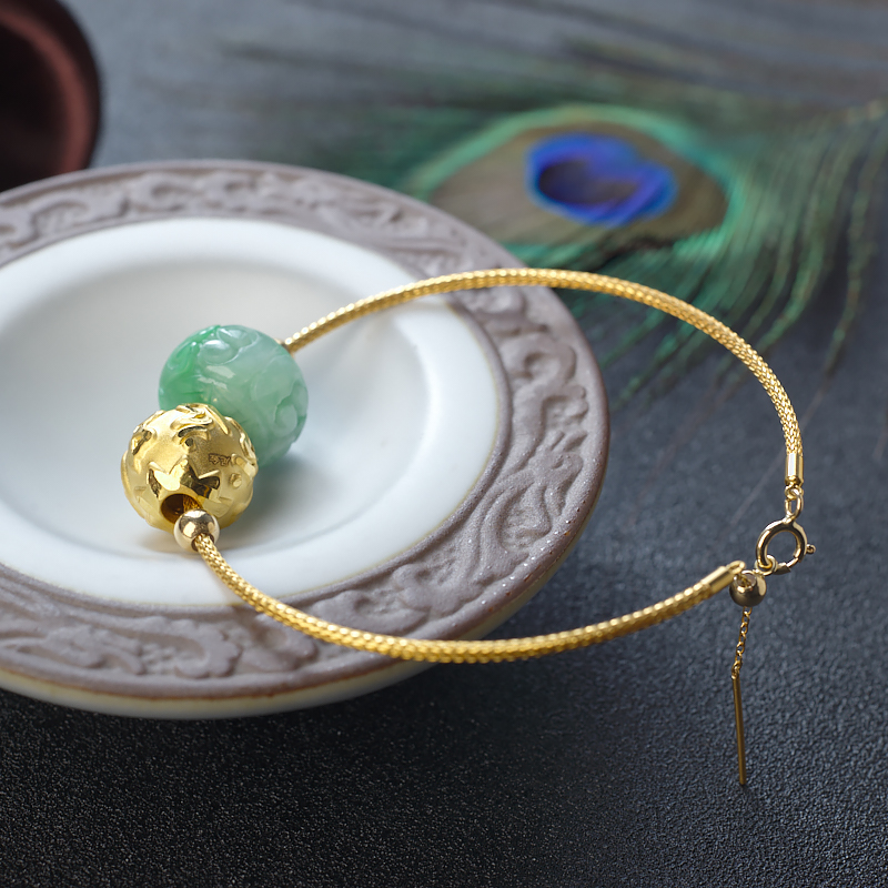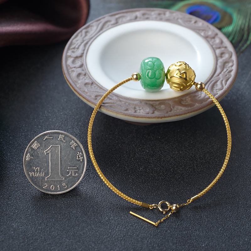 • [名  称] 18K糯种飘翠翡翠回纹鼓珠手环