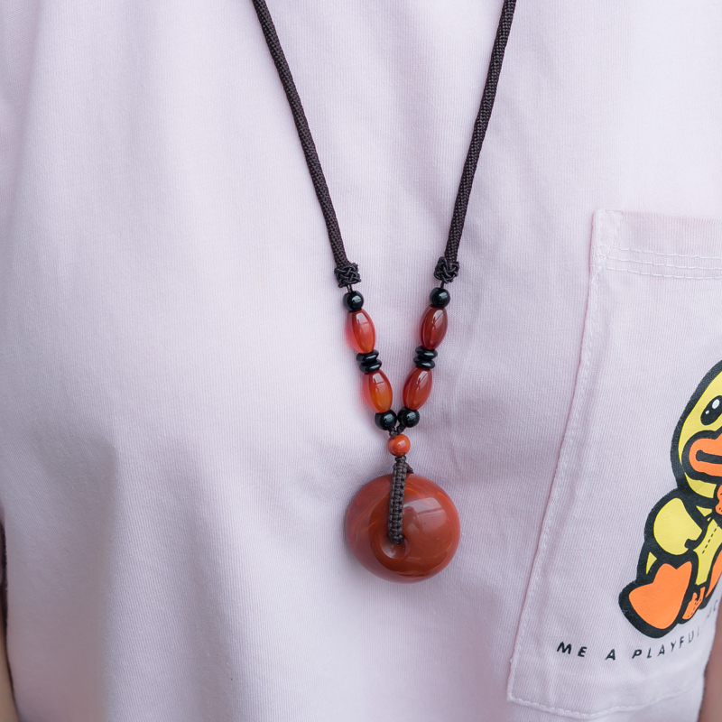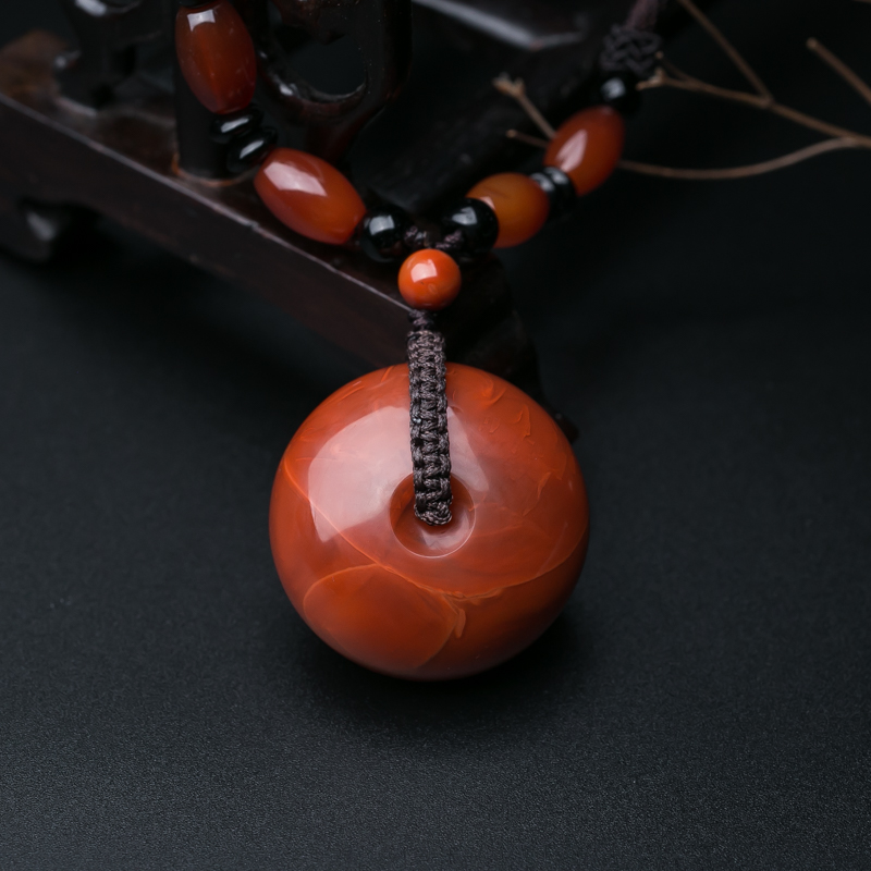 • 玫瑰红南红平安扣吊坠