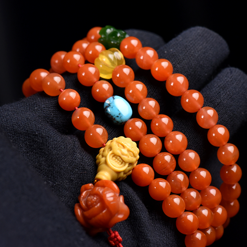 • [名  称] 7.5mm樱桃红南红108佛珠