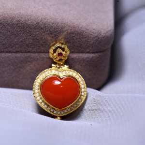 18K樱桃红南红香盒吊坠