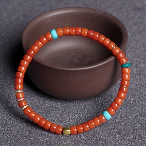 柿子红南红桶珠单圈手串
