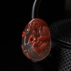 玫瑰红带柿子红南红喜上眉梢吊坠