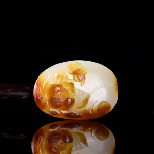 18K阿卡牛血红珊瑚牡丹花吊坠