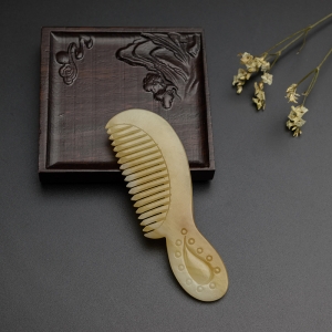 山料和田青白玉牡丹梳子