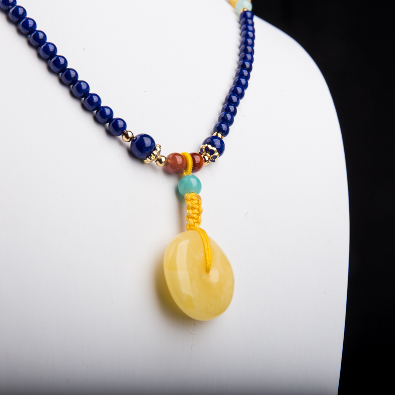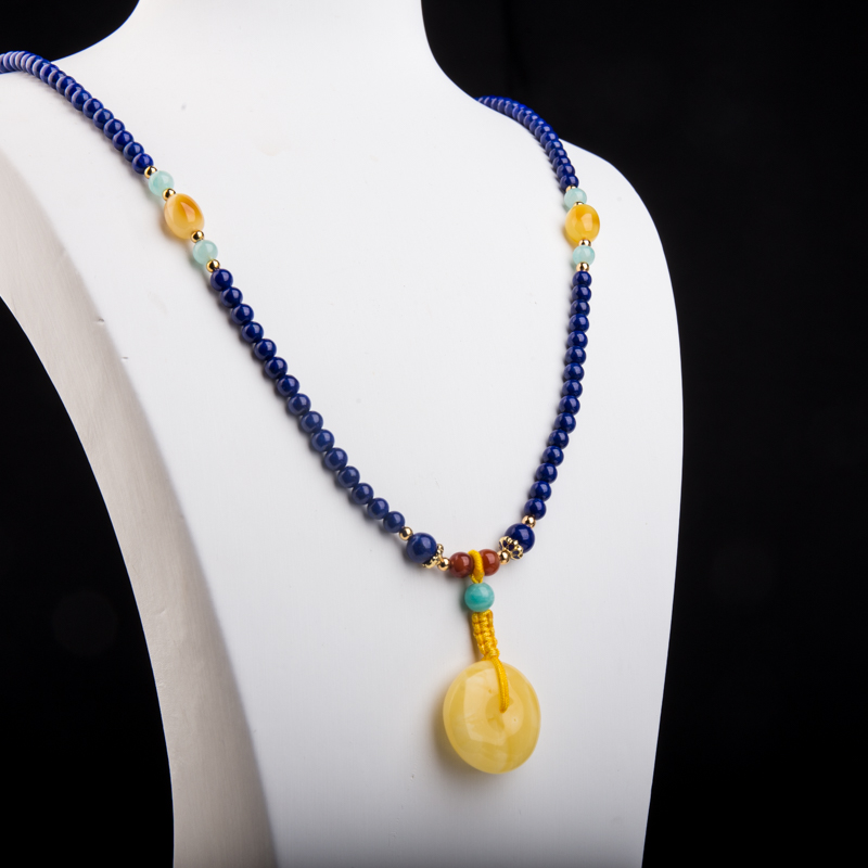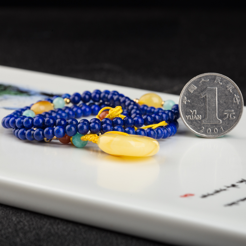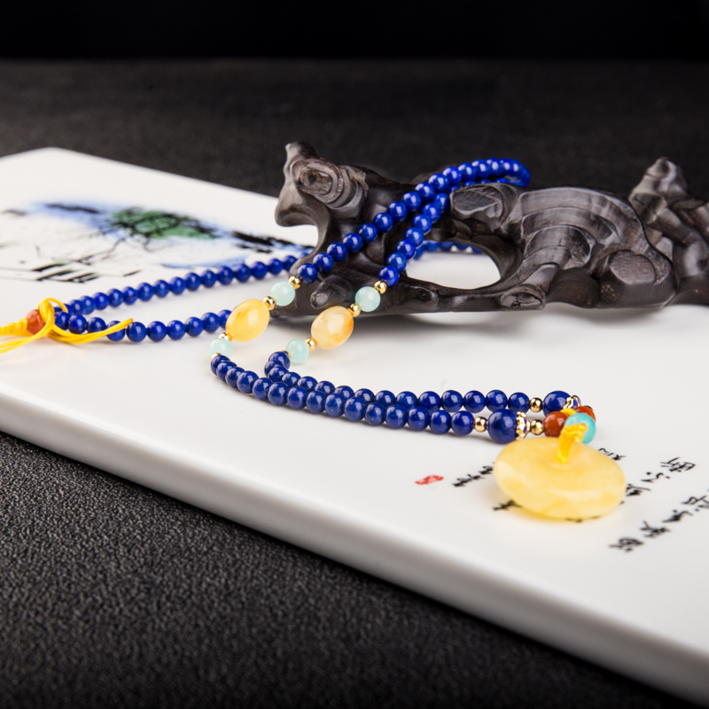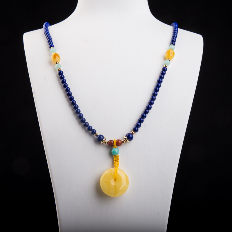 [尺  寸] 珠径4.5mm,全长71cm;蜜蜡平安扣直径22.4mm,厚7.2mm