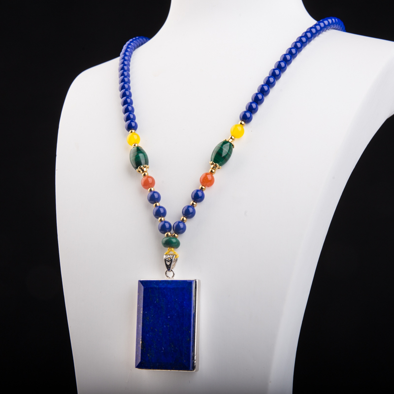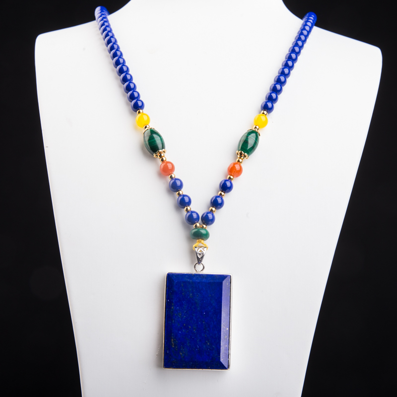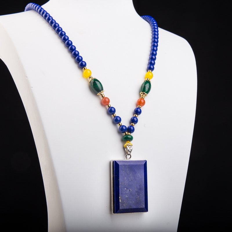 • [名  称] 银镶深蓝色青金石无事牌项链