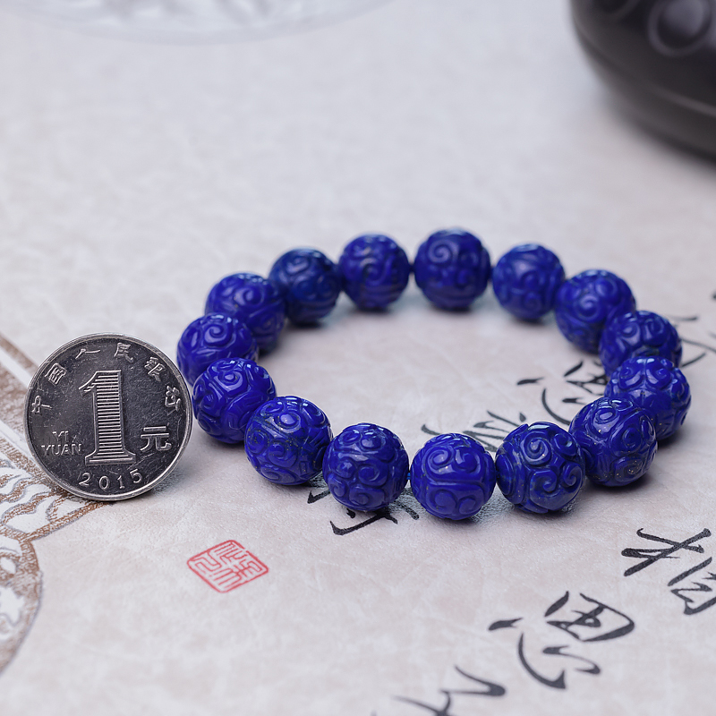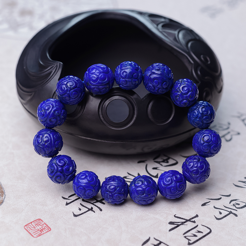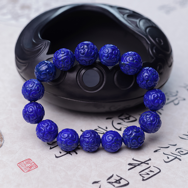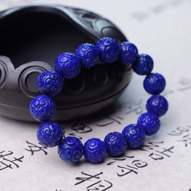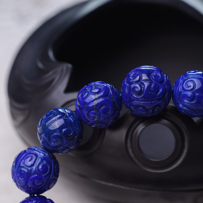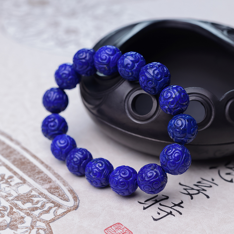• [名  称] 13mm天蓝色青金石回纹珠单圈手串